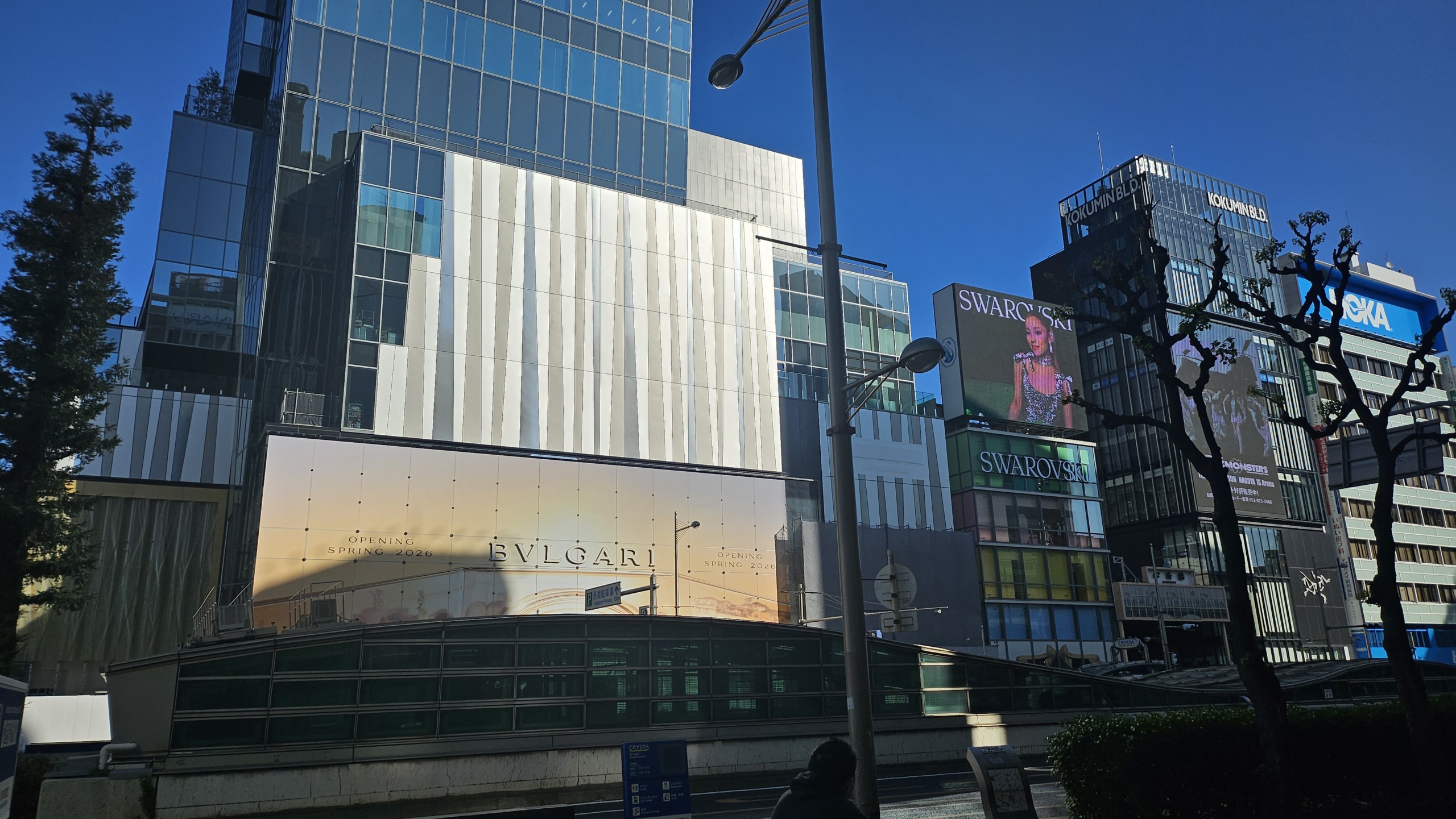 心斎橋筋北商店街入口の好立地を占める「Swarovski Osaka」、西側には「BVLGARI」が2026年(令和8年)春の開業予定