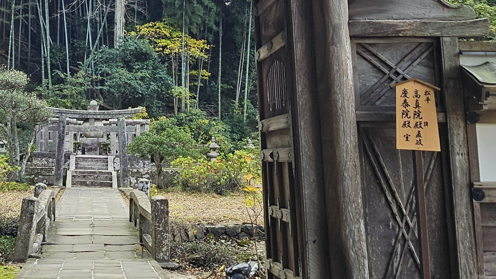 ⇧初代・直政公の廟所、廟門は島根県指定文化財で軒唐破風には虎と竹の精巧な彫刻