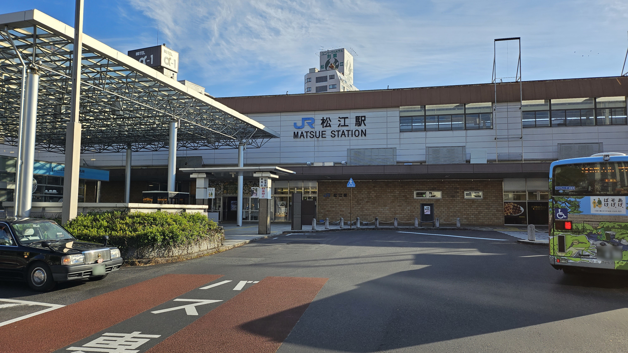 2025年(令和7年)後期放送で現在好評を博している NHK 連続テレビ小説『ばけばけ』(主演:髙石あかり・Tommy Bastow) ばけばけの最新情報 - NHK ばけばけ - 動画配信 | NHKオンデマンド 。このドラマの主人公(男女)のモデルは、明治期松江の作家・小泉八雲(こいずみやくも|Lafcadio Hearn)(※1)とその妻・セツ。筆者はこれに通じるものもあり、都会の喧騒から逃れる様に Bronze 色の「特急やくも」 273系やくも|JRおでかけネット に乗り込み、還暦を目前にして漸く(ようやく)外祖母の先祖の地・出雲国、島根県松江市を訪ねた。当地では冬晴れの好天に恵まれた。
