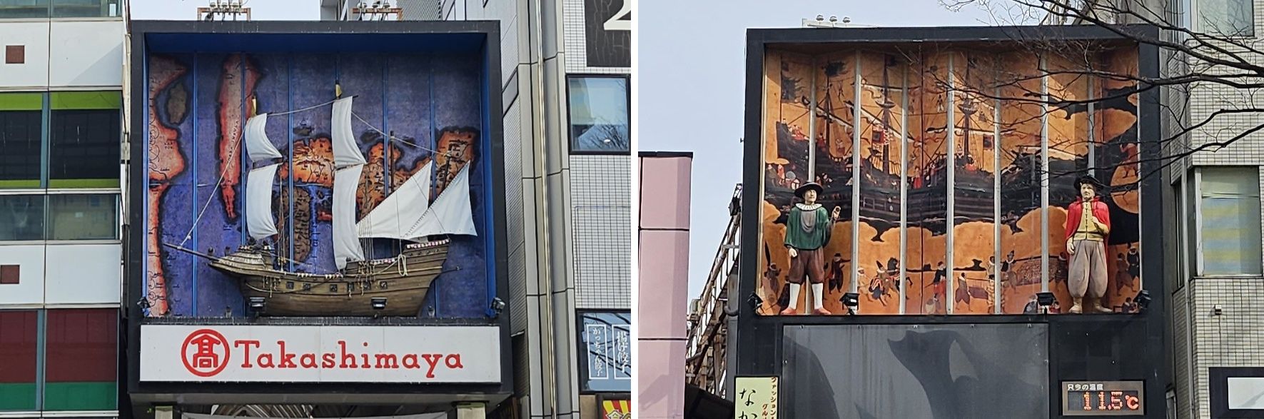 ⇧大阪府堺市・南海高野線堺東駅前「堺銀座商店街」に掲げられた「南蛮」関連看板
