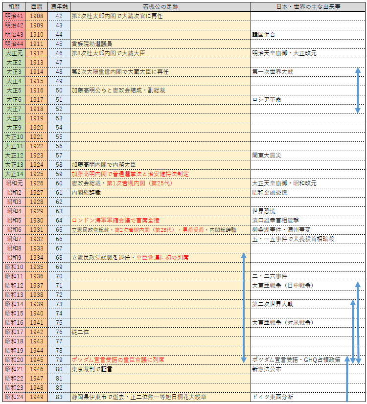 ⇧若槻禮次郎公の略年表と日本・世界の主な出来事